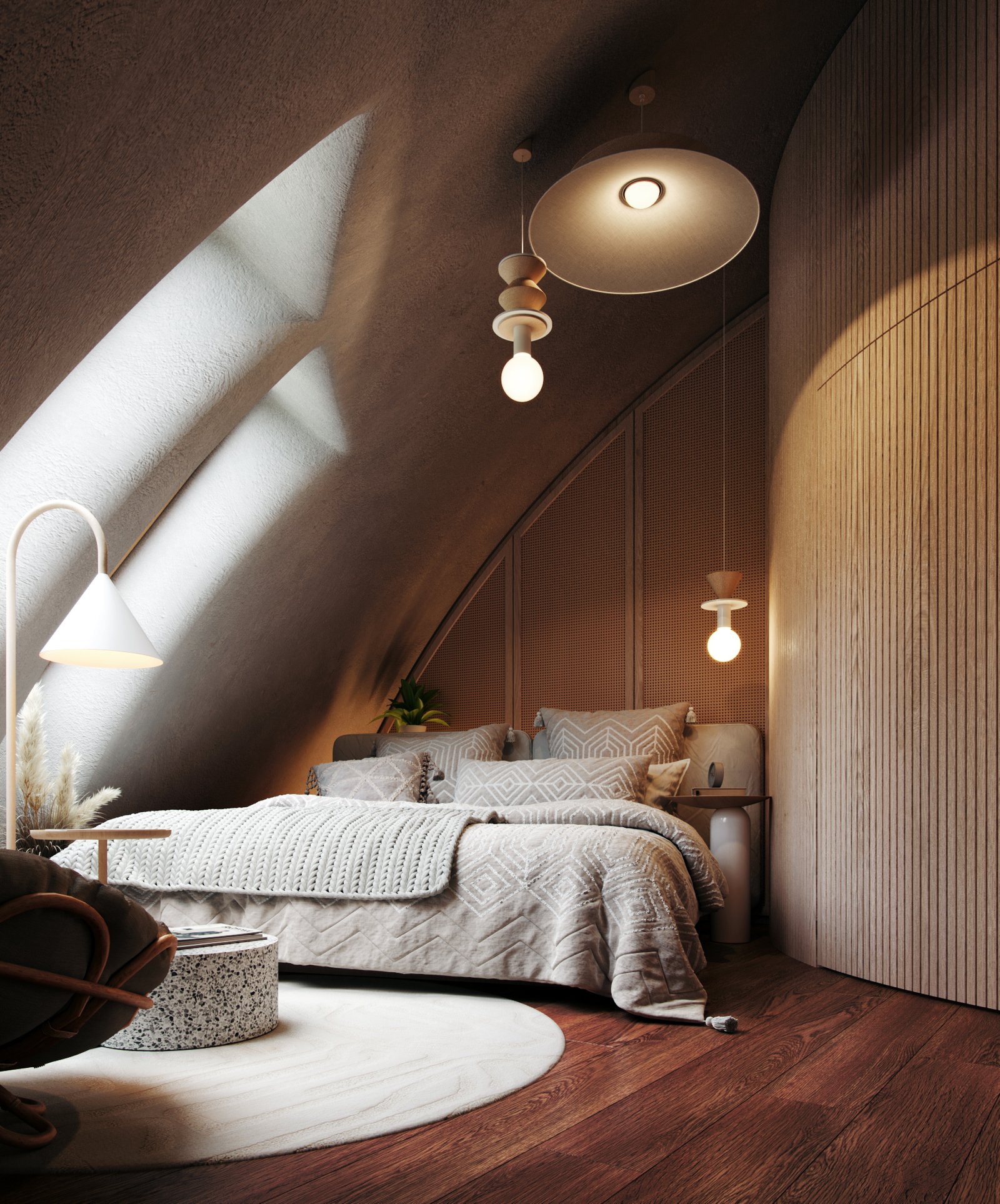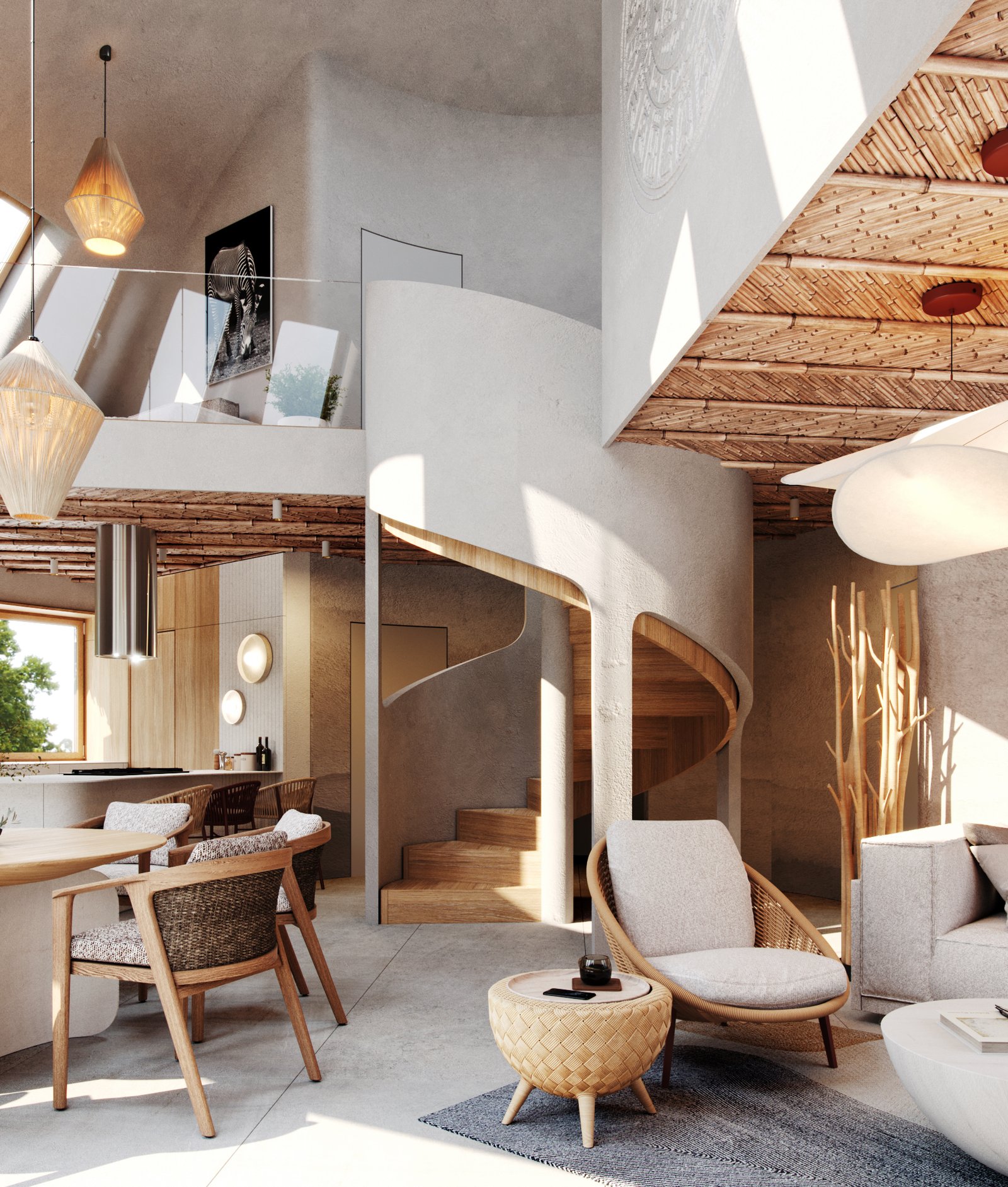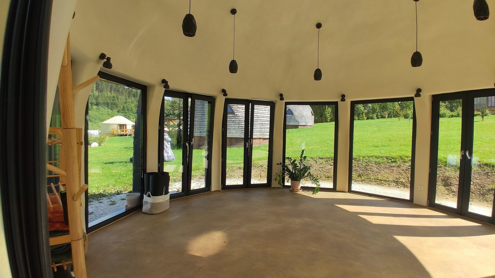 Die Häuser von Domir zeichnen sich durch ihre charakteristische Kuppelform aus, die eine besonders stabile und energieeffiziente Struktur bietet. Diese Form reduziert den Wärmeverlust, sorgt für eine gleichmäßige Luftzirkulation und schafft ein angenehmes Mikroklima im Inneren.