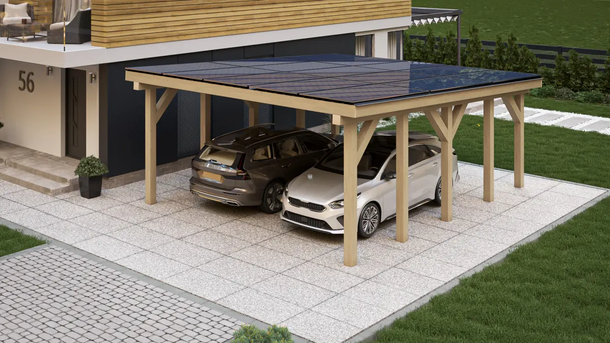 Solar-Carport 6×7 m aus KVH-Massivholz